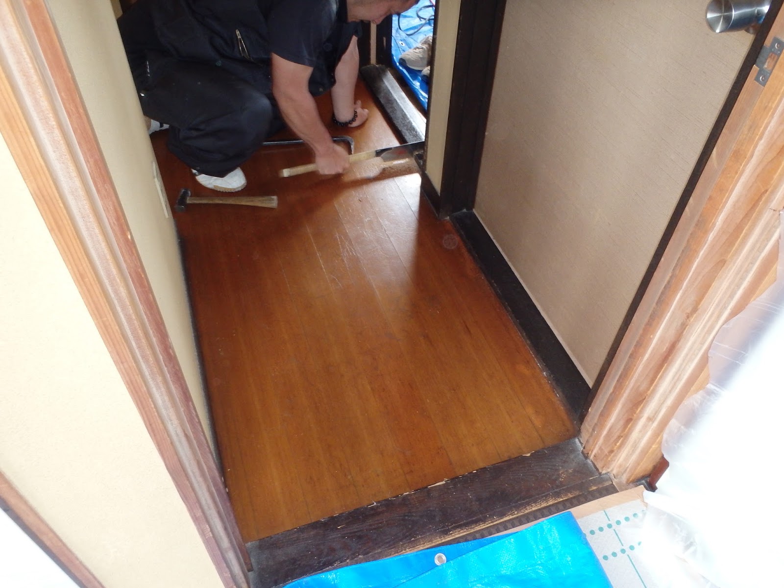 2階の 和室の改装工事 と 廊下のフローリング工事を