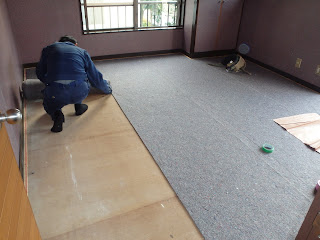 2階洋室の 床 絨毯の張替え 工事を 行っています