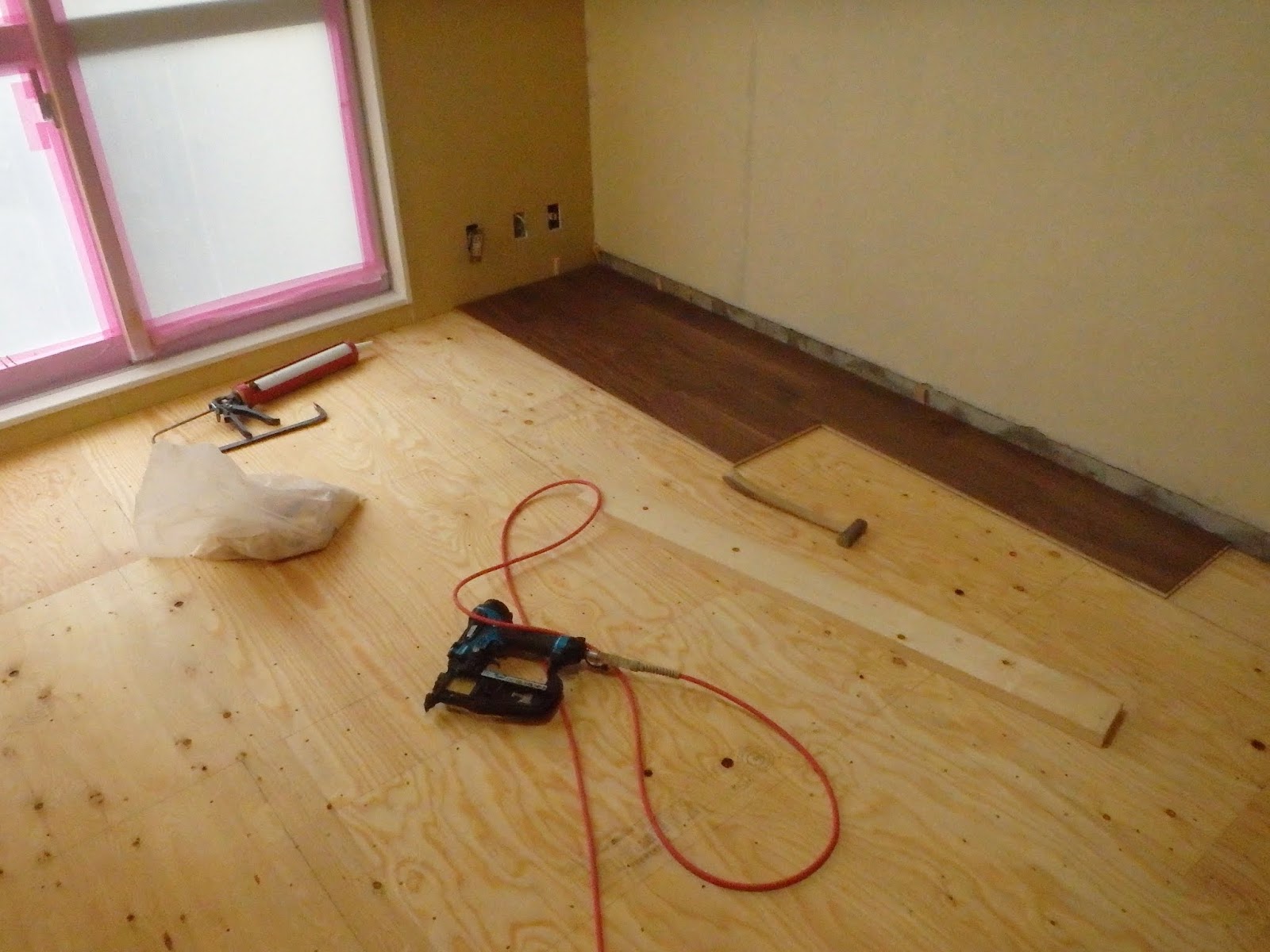 床の フロアー材工事が 進んでいるのと